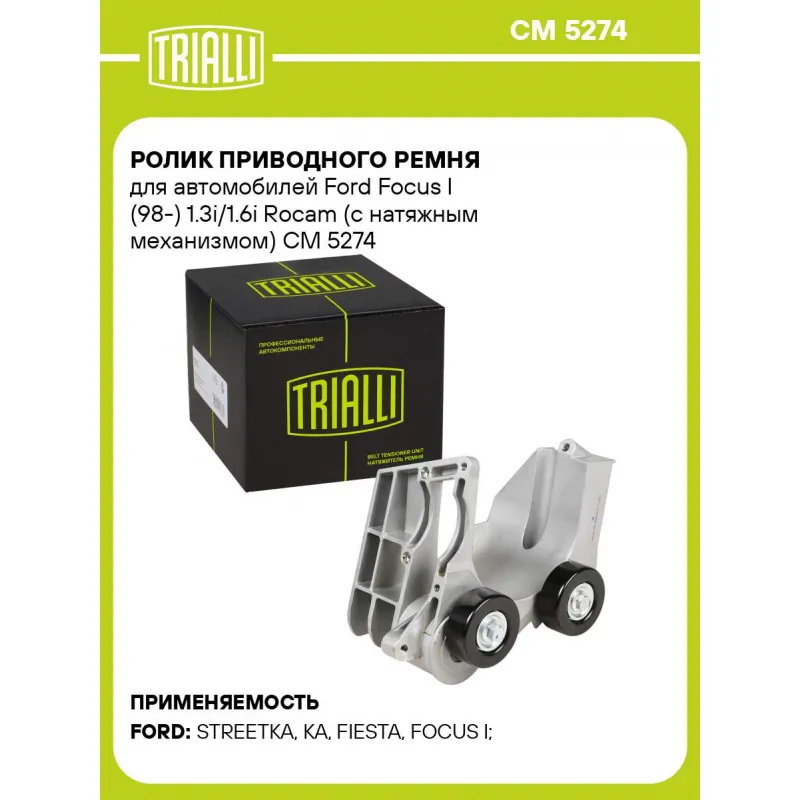 Ролик приводного ремня для автомобилей Ford Focus I (98-) 1.3i/1.6i Rocam (с натяжным механизмом) Характеристики: Артикул: CM 5274 OEM номера: 1149701, 1340774, 1376886, 1488357, 1517861, 1727654, 2S6G10K018BA, 2S6G10K018BB, 2S6G10K018BC Сопутствующие товары:: 6PK2236, 6PK1698 Сопутствующий товар: Ремни: 6PK2236, 6PK1698 Количество на автомобиль: 1 Внешний диаметр, мм: 70 Ширина, мм: 26 Гарантийный срок: 2 года/60 000 км. Материал: Комбинированный Товарная линейка: BLACK Комплектация: Ролик привод. ремня с натяж. мех. - 1 шт Гарантия: от 1 года.
