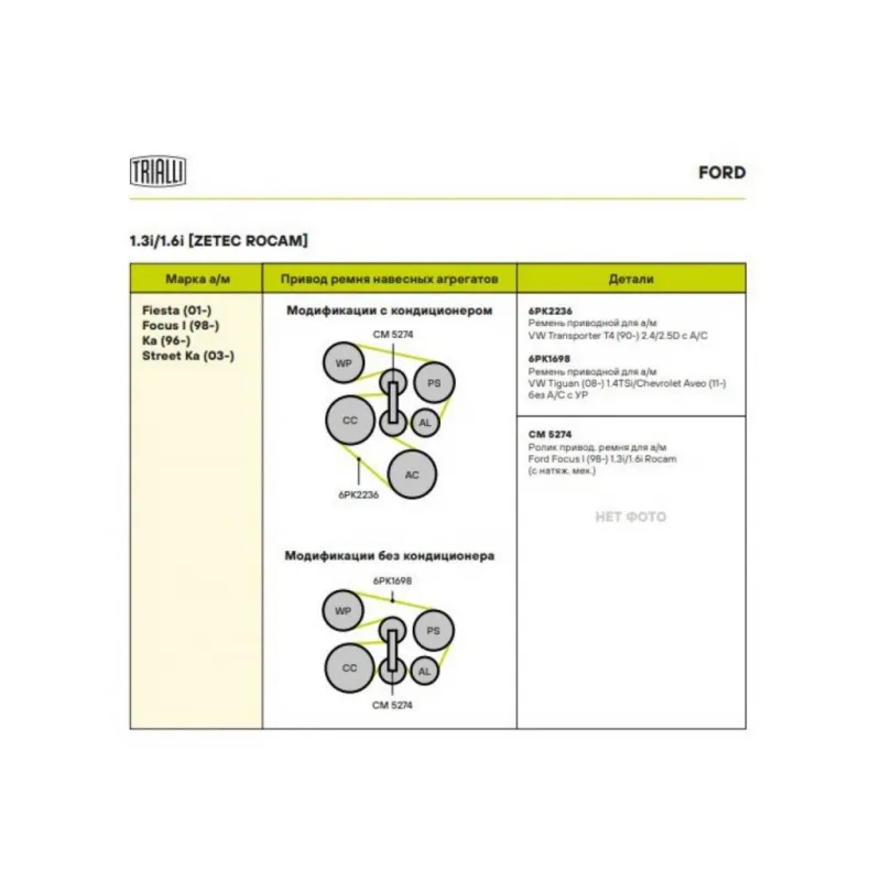 | Сопутствующий товар: Ремни | 6PK2236, 6PK1698 |