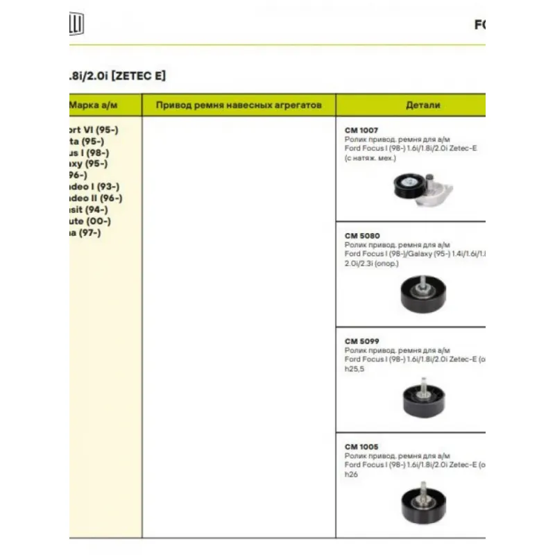 | Сопутствующий товар: Ролики приводного ремня | CM 5501, CM 5716 |