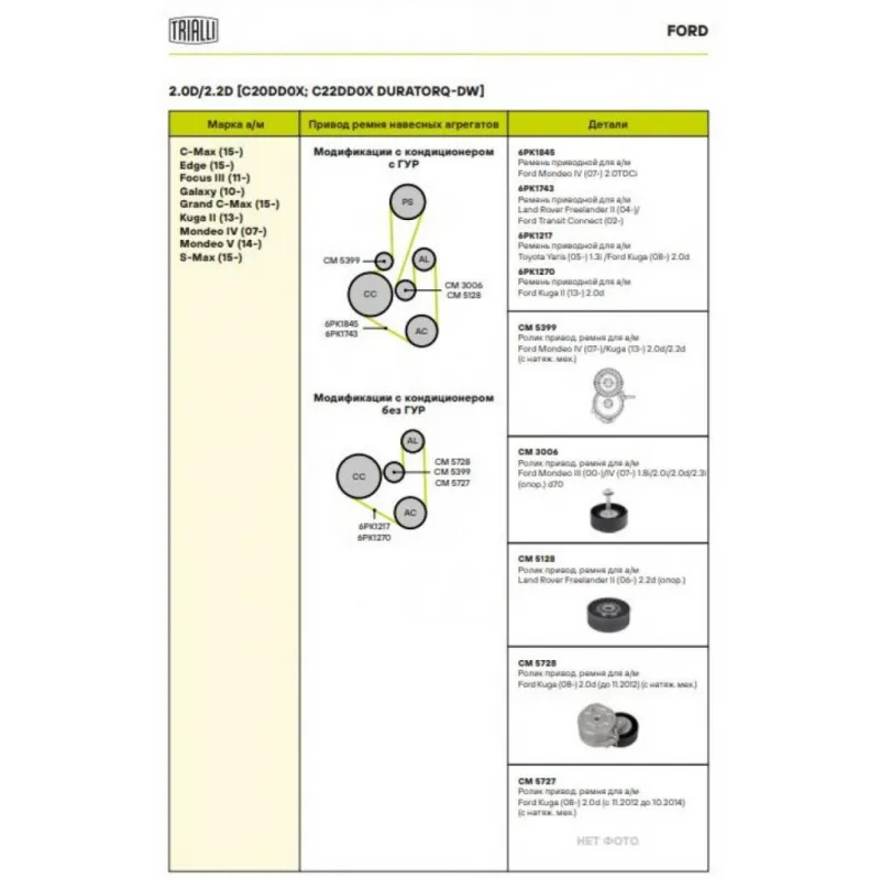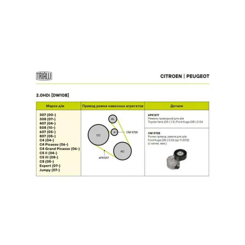 | Сопутствующий товар: Ролики приводного ремня | CM 5399, CM 5306, CM 5128, CM 5727 |