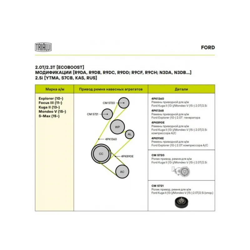| Сопутствующий товар: Ролики приводного ремня | CM 5721 |