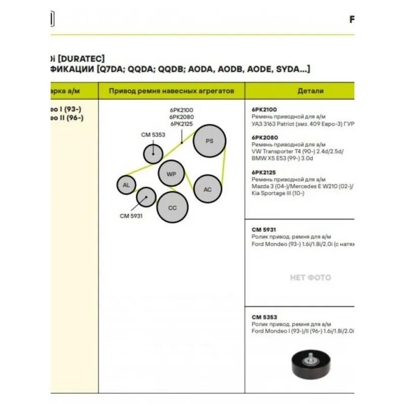 | Сопутствующий товар: Ролики приводного ремня | CM 5931 |