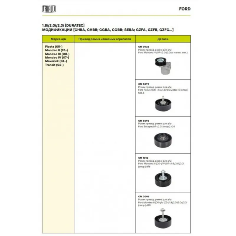 | Сопутствующий товар: Ролики приводного ремня | CM 5099, CM 5093, CM 1012, CM 3006 |
