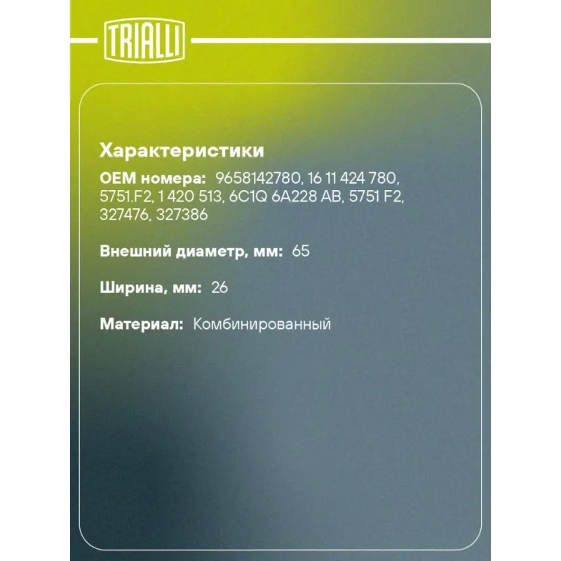 | Внешний диаметр, мм | 65 |