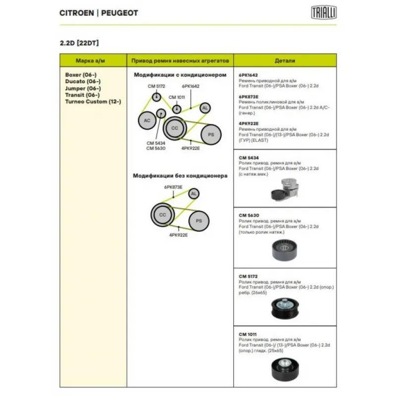 | Сопутствующий товар: Ролики приводного ремня | CM 5606, CM 5623, CM 5636, CM 5514, CM 5510 |