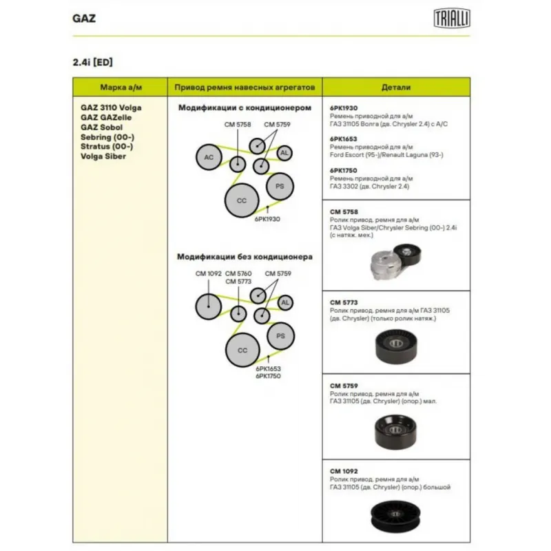 | Сопутствующий товар: Ролики приводного ремня | CM 5778, CM 5759, CM 1092 |
