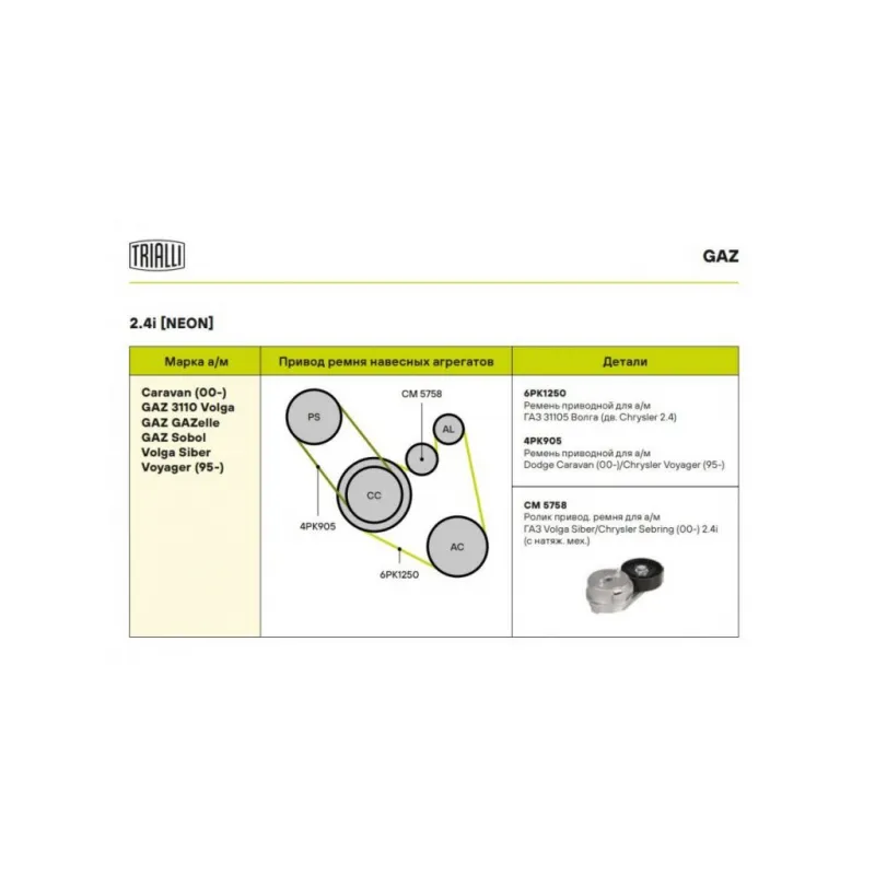 | Сопутствующий товар: Ролики приводного ремня | CM 5773, CM 5759, CM 1092 |