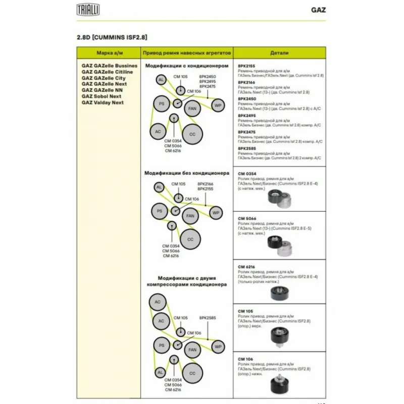 | Сопутствующий товар: Ролики приводного ремня | CM 5066, CM 6216, CM 105, CM 106 |