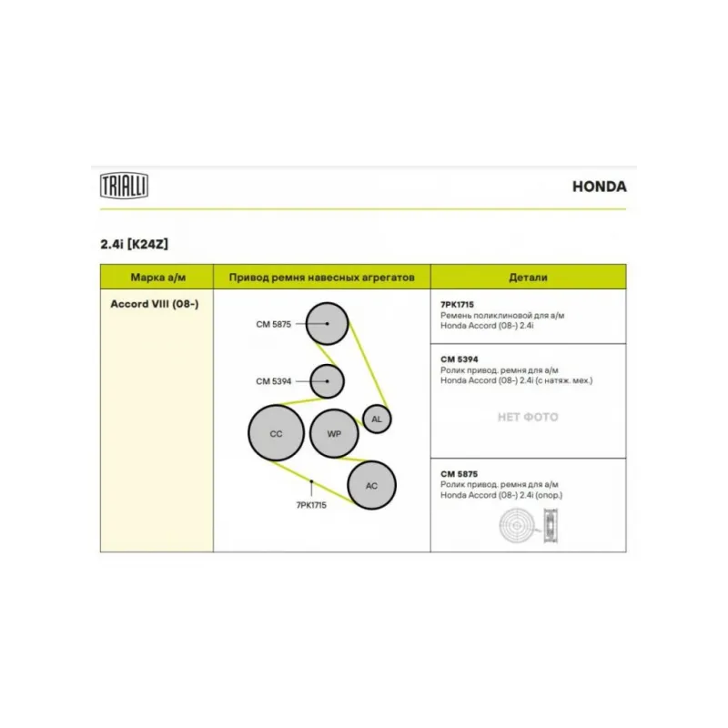| Сопутствующий товар: Ремни | 7PK1715 |