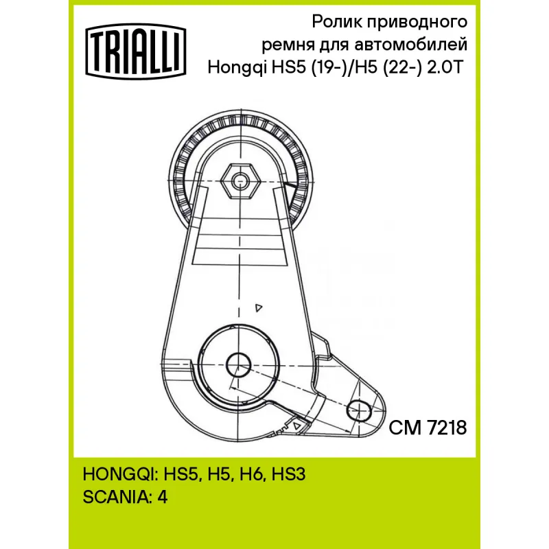 Ролик приводного ремня для автомобилей Hongqi HS5 (19-)/H5 (22-) 2.0T (с натяжным механизмом) Характеристики: Артикул: CM 7218 OEM номера: 1023025-45L Гарантийный срок: 2 года/60 000 км. Товарная линейка: BLACK Количество на автомобиль: 1 Материал: Комбинированный Комплектация: Ролик приводного ремня - 1 шт Гарантия: от 1 года.