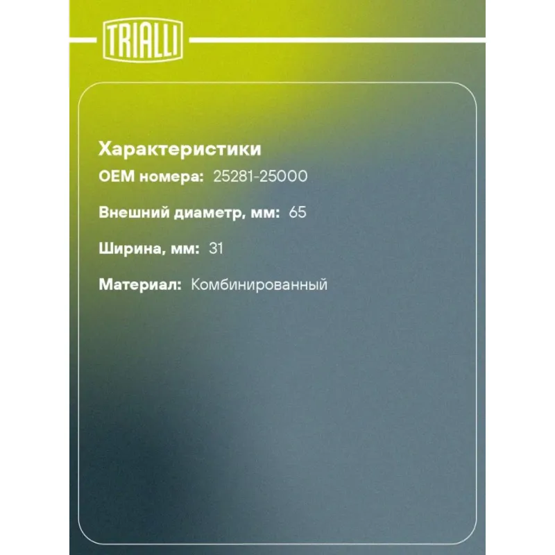 Ролик приводного ремня для автомобилей Hyundai ix35 (10-)/Kia Sportage (10-) 2.0i/2.4i (с натяжным механизмом) (подшипник NSK/NTN) Характеристики: Артикул: CM 0807N OEM номера: 25281-25000 Ширина, мм: 31 Внешний диаметр, мм: 65 Гарантийный срок: 2 года/80 000 км. Количество на автомобиль: 1 Материал: Комбинированный Товарная лин... Читать полностью →