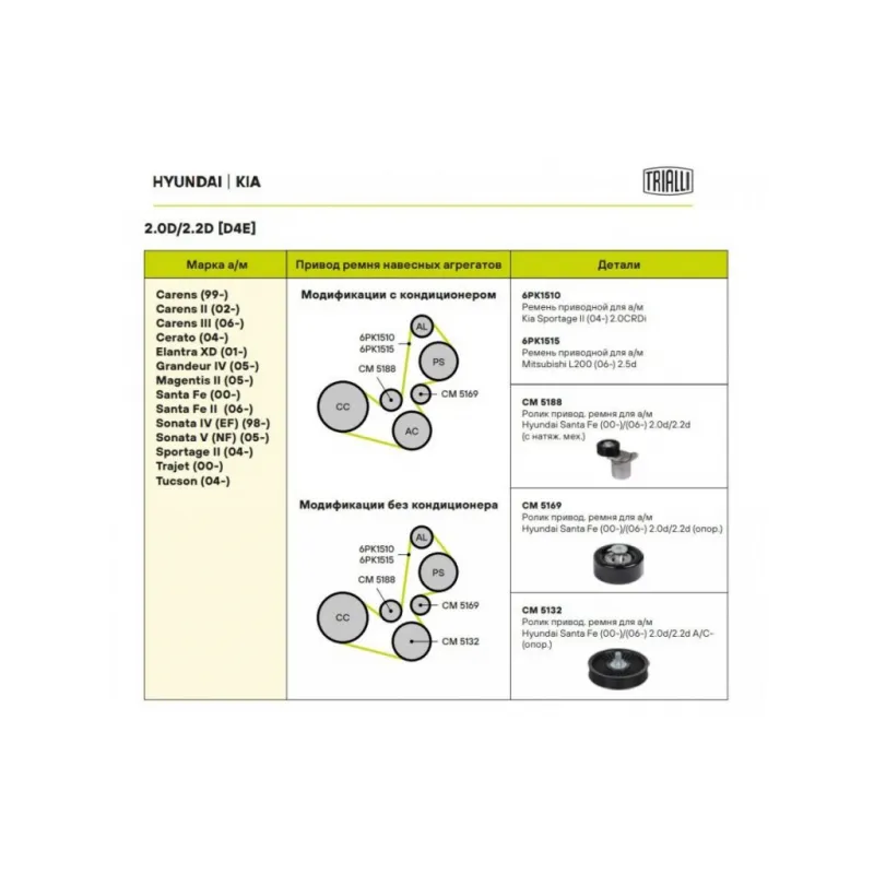 | Сопутствующий товар: Ролики приводного ремня | CM 5169, CM 5132 |