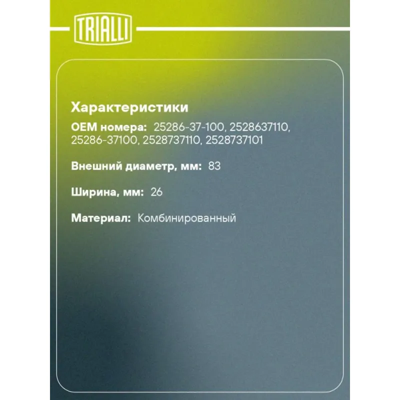 | Количество на автомобиль | 1 |
