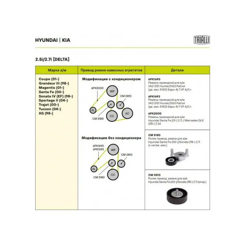 | Сопутствующий товар: Ремни | 6PK1690, 6PK1693, 6PK2000 |