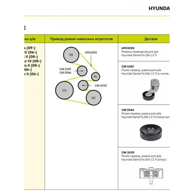 | Сопутствующий товар: Ролики приводного ремня | CM 5347, CM 3039 |