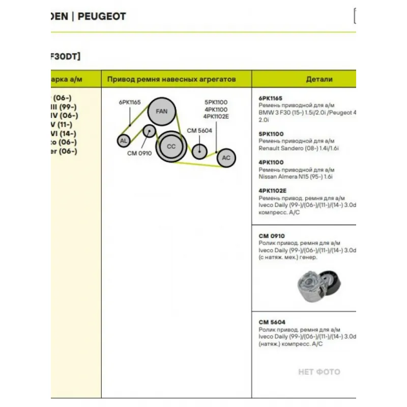 | Сопутствующий товар: Ролики приводного ремня | CM 5604 |