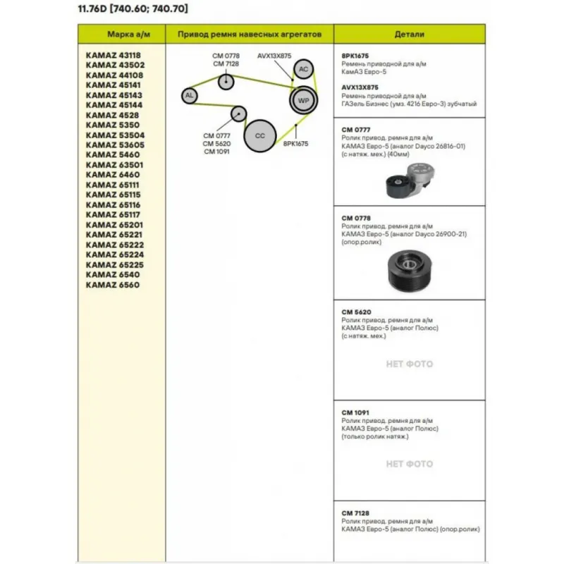 | Сопутствующий товар: Ролики приводного ремня | CM 101, CM 110, CM 111, CM 0778 |