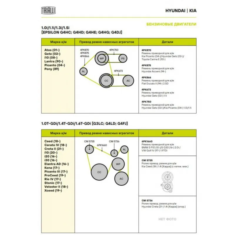 | Сопутствующий товар: Ролики приводного ремня | CM 5736 |