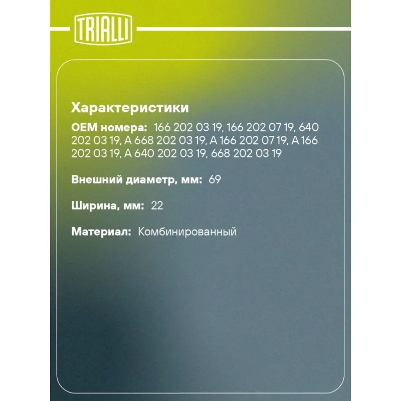 | Внешний диаметр, мм | 69 |