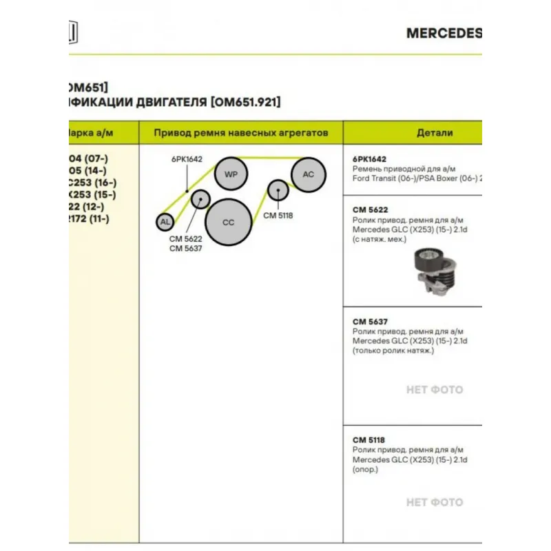 | Сопутствующий товар: Ролики приводного ремня | CM 5118, CM 5637 |