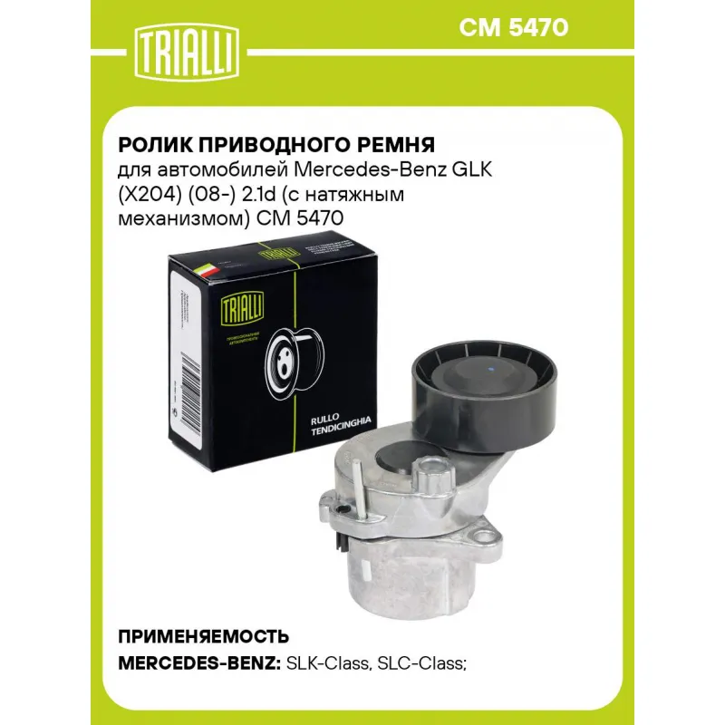 Ролик приводного ремня для автомобилей Mercedes-Benz GLK (X204) (08-) 2.1d (с натяжным механизмом) Характеристики: Артикул: CM 5470 OEM номера: 68131 035AA, K68131035AA, 6512000070 , 6512001670 , 6512001770, A6512000070 , A6512001670, A6512001770 Количество на автомобиль: 1 Внешний диаметр, мм: 65 Ширина, мм: 26 Гарантийный сро... Читать полностью →