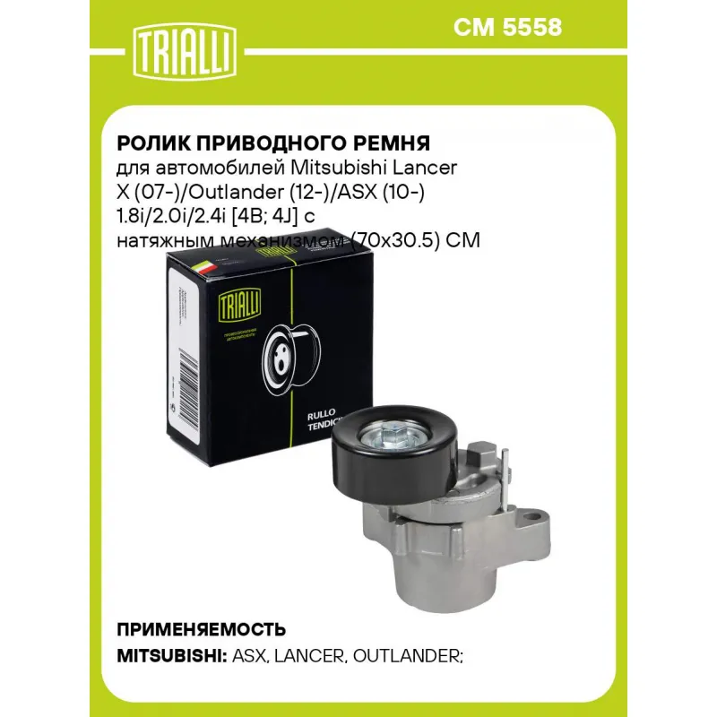 Ролик приводного ремня для автомобилей Mitsubishi Lancer X (07-)/Outlander (12-)/ASX (10-) 1.8i/2.0i/2.4i [4B; 4J] с натяжным механизмом (70x30.5) CM 5558 TRIALLI