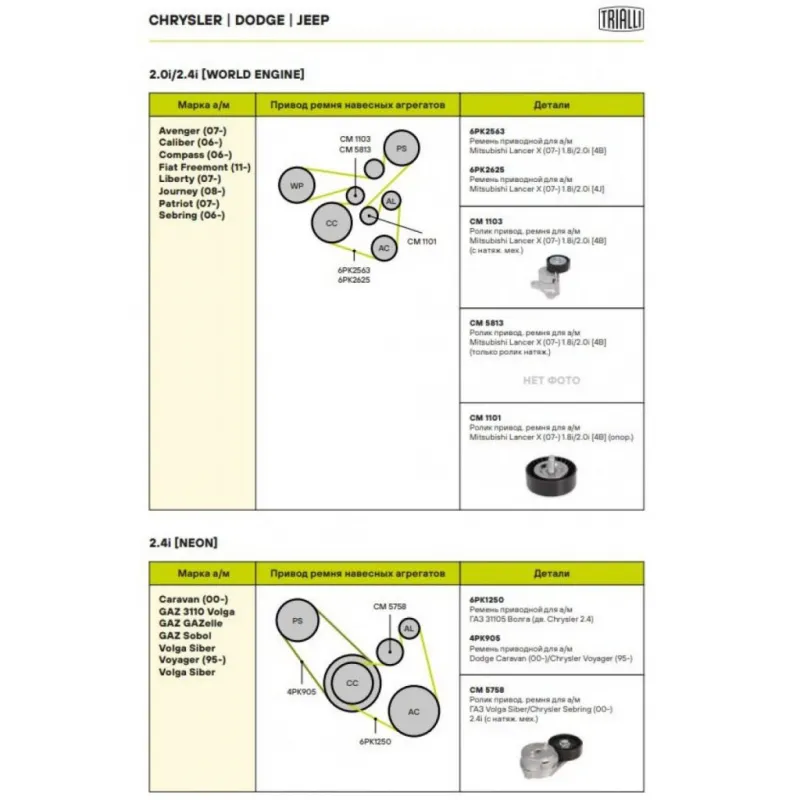 | Сопутствующий товар: Ролики приводного ремня | CM 1103, CM 1101 |