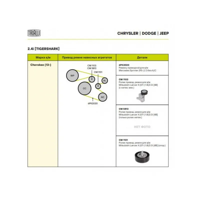| Сопутствующий товар: Ремни | 6PK2020 |