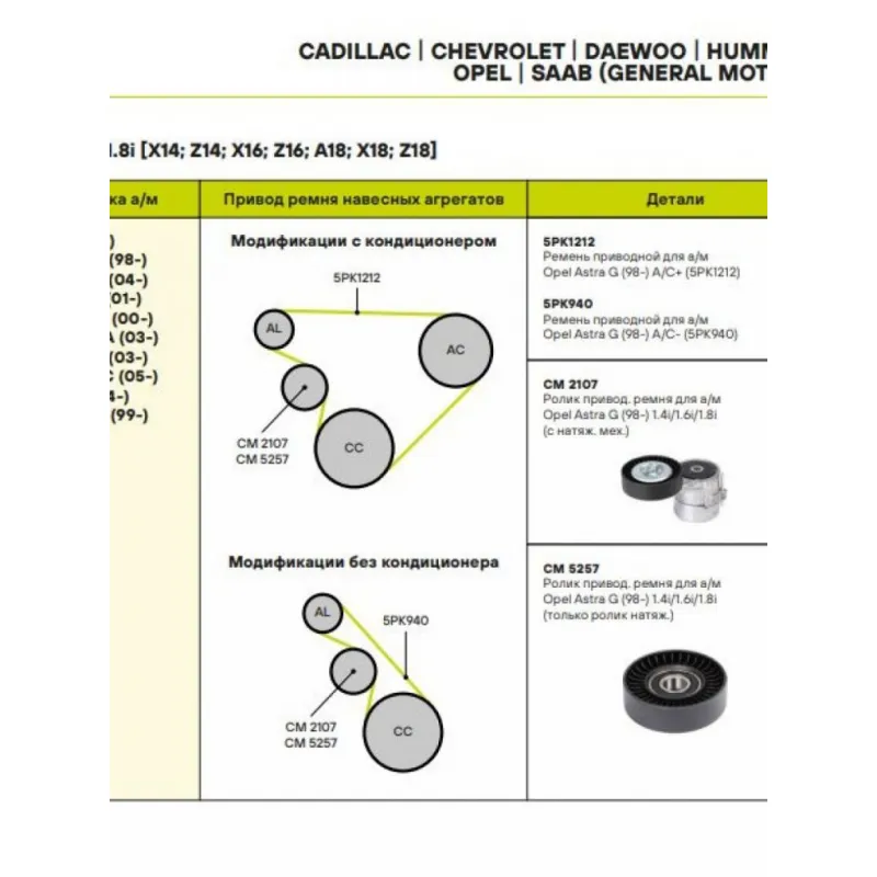 | Сопутствующий товар: Ролики приводного ремня | CM 2107 |