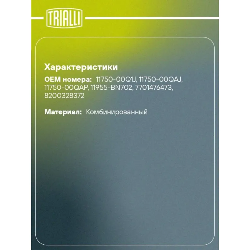 Ролик приводного ремня для автомобилей Renault Megane II (02-) 1.4i/1.6i/1.5dCi натяжной Характеристики: Артикул: CM 5531 OEM номера: 11750-00Q1J, 11750-00QAJ, 11750-00QAP, 11955-BN702, 7701476473, 8200328372 Товарная линейка: BLACK Количество на автомобиль: 1 Гарантийный срок: 2 года/60 000 км. Материал: Комбинированный Сопутствующий товар: Ремни: 5PK1135 Комплектация: Ролик приводного ремня - 1 шт Гарантия: от 1 года.