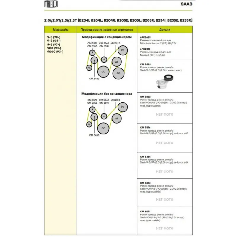 Ролик приводного ремня для автомобилей Saab 9-5 (97-) 2.0i/2.3i (с натяжным механизмом) Характеристики: Артикул: CM 5488 OEM номера: 48 98 755, 43 56 119, 51 72 184 Количество на автомобиль: 1 Внешний диаметр, мм: 90 Внутренний диаметр, мм: 10,4 Ширина, мм: 25 Гарантийный срок: 2 года/60 000 км. Материал: Комбинированный Товарна... Читать полностью →