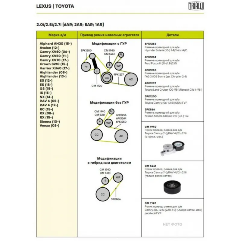 Ролик приводного ремня для автомобилей Toyota Camry (06-) 2.5i [2AR-FE) (USA) (с натяжным механизмом) двойной ГУР Характеристики: Артикул: CM 7120 OEM номера: 16601-0V010 Ширина, мм: 19; 15 Внешний диаметр, мм: 70; 55 Гарантийный срок: 2 года/60 000 км. Количество на автомобиль: 1 Материал: Комбинированный Товарная линейка: BLAC... Читать полностью →