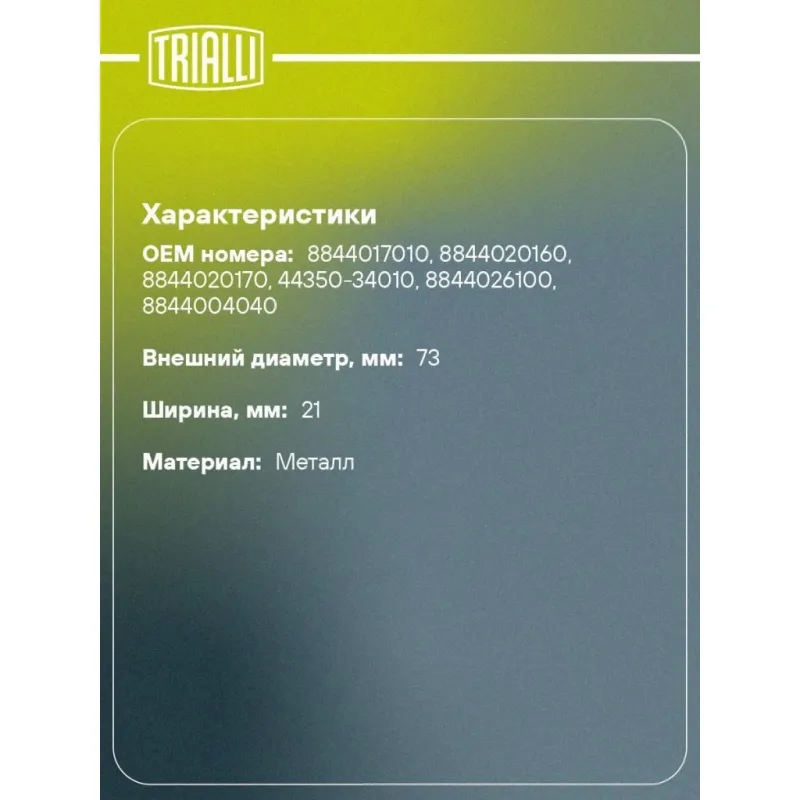 | Количество на автомобиль | 1 |