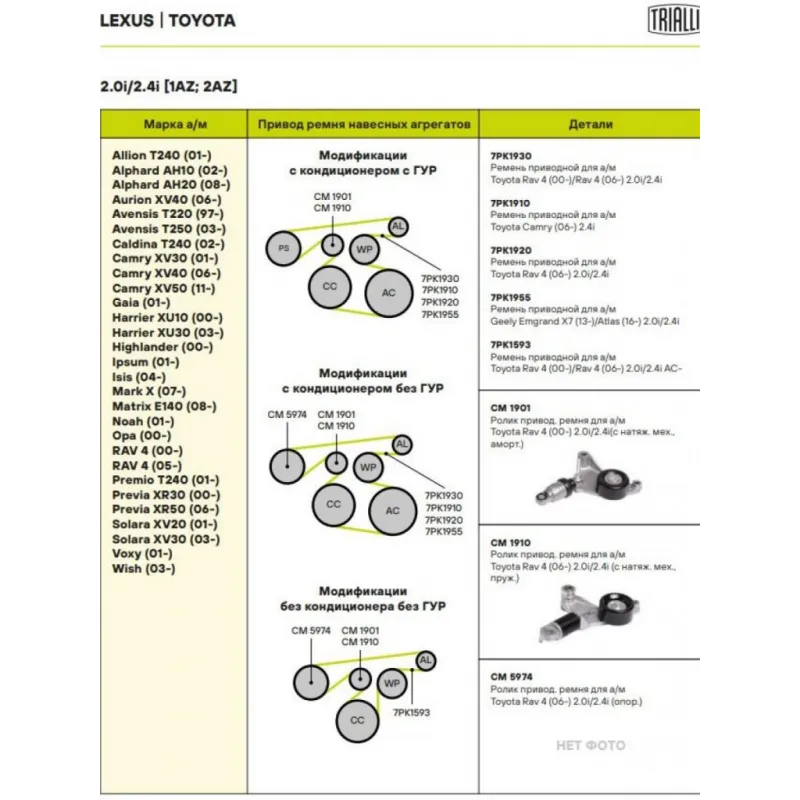 | Сопутствующий товар: Ролики приводного ремня | CM 1910 |