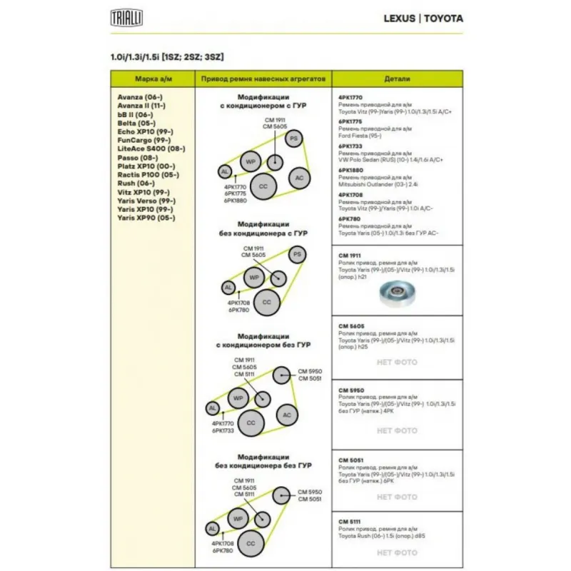 Ролик приводного ремня для автомобилей Toyota Vitz (99-)/Yaris (99-)/Yaris (05-) 1.0i/1.3i/1.5i [1SZ; 2SZ; 3SZ] (опорный) h21 (под ремень 4PK) (CM 1911) Характеристики: Артикул: CM 1911 OEM номера: 16603-97401, 16603-23011, 16603-97401-000, 1660397401, 1660323010, 1660323011, 16603-23010, 16603-23010-000, 16603-23011-000 Количество на автомобиль: 1 Внешний диаметр, мм: 88 Особенности конструкции:: приводной Внутренний диаметр, мм: 10 Ширина, мм: 21 Гарантийный срок: 2 года/60 000 км. Материал: Металл Товарная линейка: BLACK Подходит для авто: Toyota Yaris (99-) Для проверки применяемости отправьте VIN автомобиля через вкладку "Есть вопросы о товаре?" Комплектация: Ролик приводного ремня - 1 шт Гарантия: от 1 года.