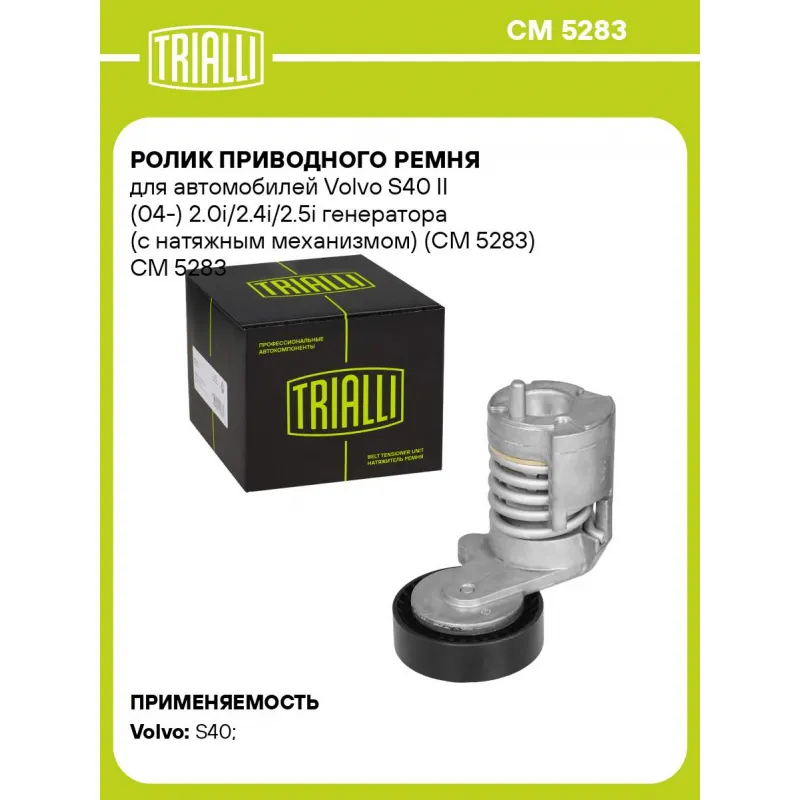 Ролик приводного ремня для автомобилей Volvo S40 II (04-) 2.0i/2.4i/2.5i генератора (с натяжным механизмом) (CM 5283) Характеристики: Артикул: CM 5283 OEM номера: 3272.SL, 1374425, 6M5Q-6A228-AA, 30650957 Количество на автомобиль: 1 Внешний диаметр, мм: 76 Ширина, мм: 37 Гарантийный срок: 2 года/60 000 км. Материал: Комбинированный Товарная линейка: BLACK Подходит для авто: Volvo S40 (04-), S40 (04-) Для проверки применяемости отправьте VIN автомобиля через вкладку "Есть вопросы о товаре?" Комплектация: Ролик привод. ремня с натяж. мех. - 1 шт Гарантия: от 1 года.