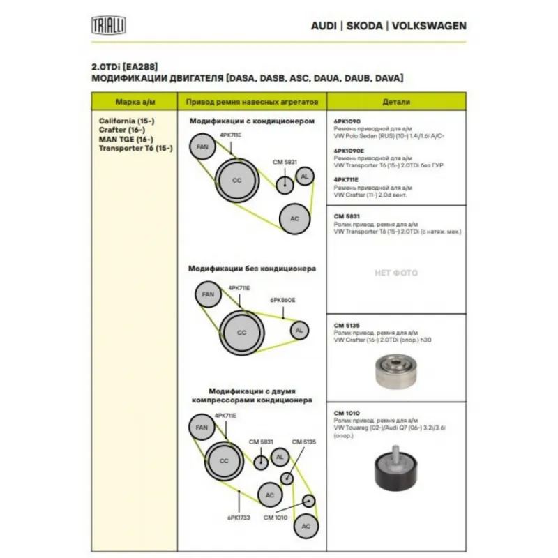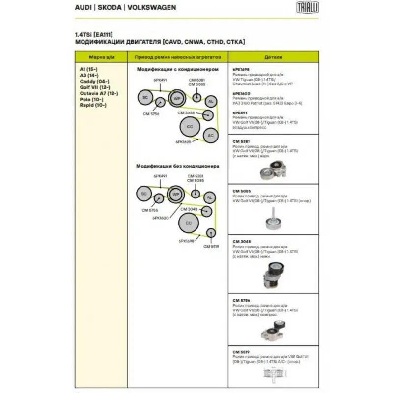 | Сопутствующий товар: Ролики приводного ремня | CM 5085, CM 3048, CM 5756, CM 5519 |