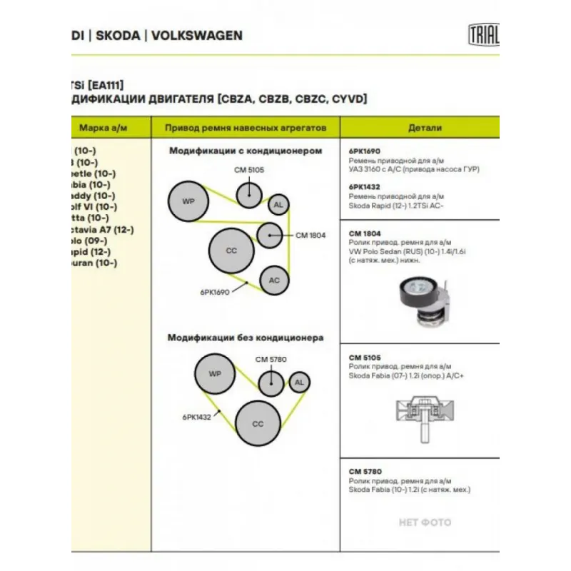 | Сопутствующий товар: Ролики приводного ремня | CM 1803, CM 5233 |