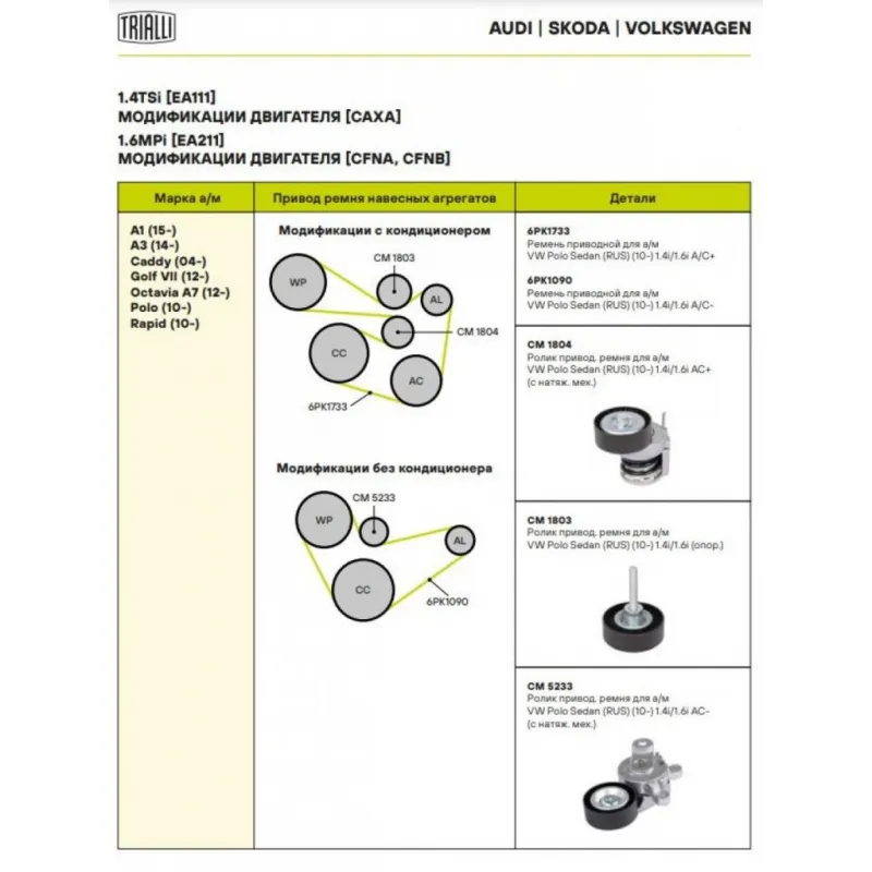 | Сопутствующий товар: Ролики приводного ремня | CM 1803, CM 1804 |
