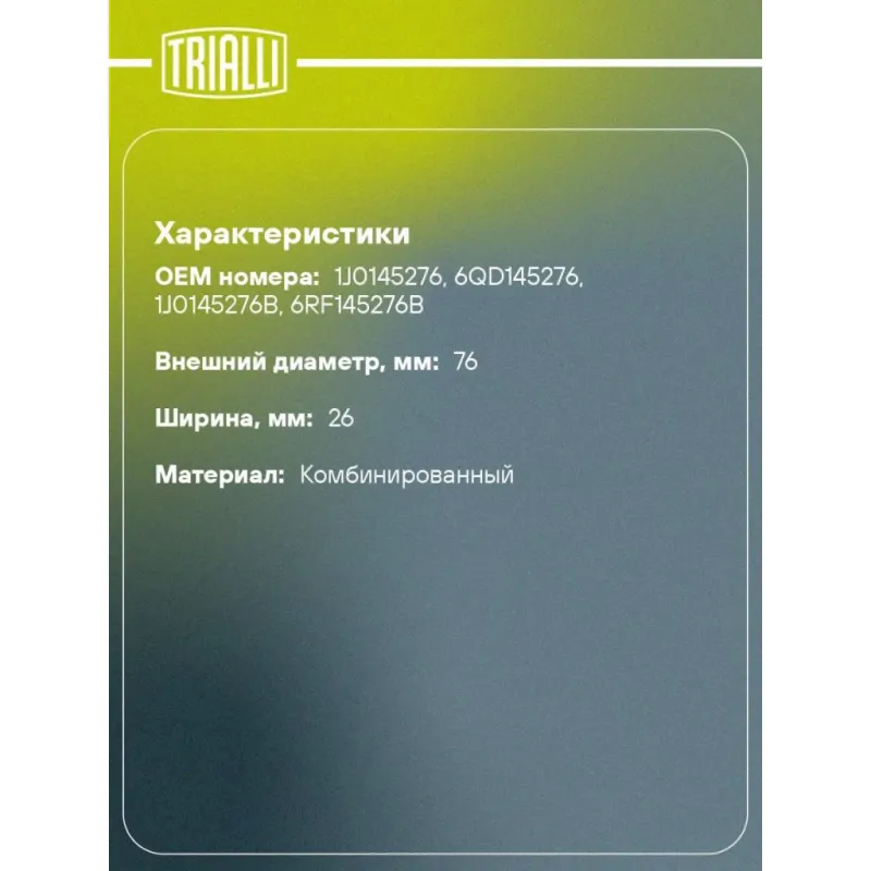 Ролик приводного ремня для автомобилей VW Polo Sedan (RUS) (10-) 1.4i/1.6i (опорный) (подшипник NSK/NTN) Характеристики: Артикул: CM 1803N OEM номера: 1J0145276, 6QD145276, 1J0145276B, 6RF145276B Ширина, мм: 26 Внешний диаметр, мм: 76 Внутренний диаметр, мм: 10 Гарантийный срок: 2 года/80 000 км. Количество на автомобиль: 1 Мате... Читать полностью →