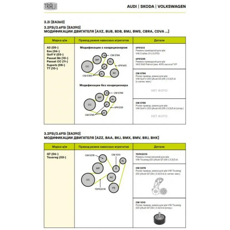 | Сопутствующий товар: Ролики приводного ремня | CM 1010 |