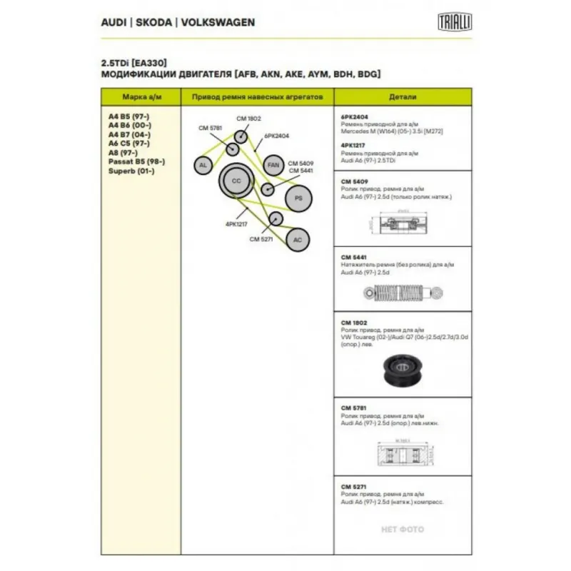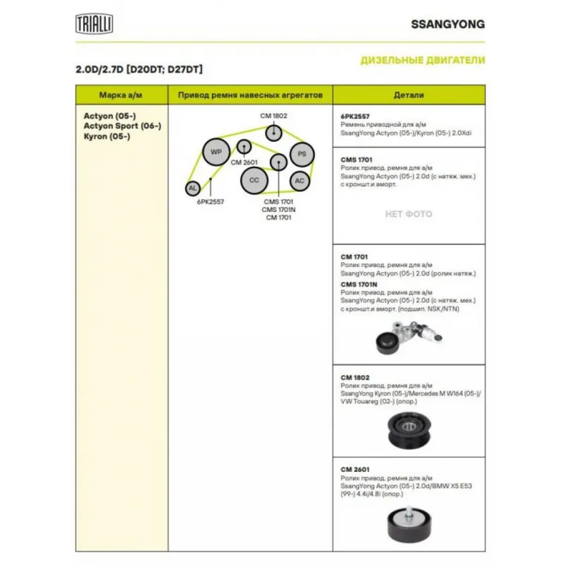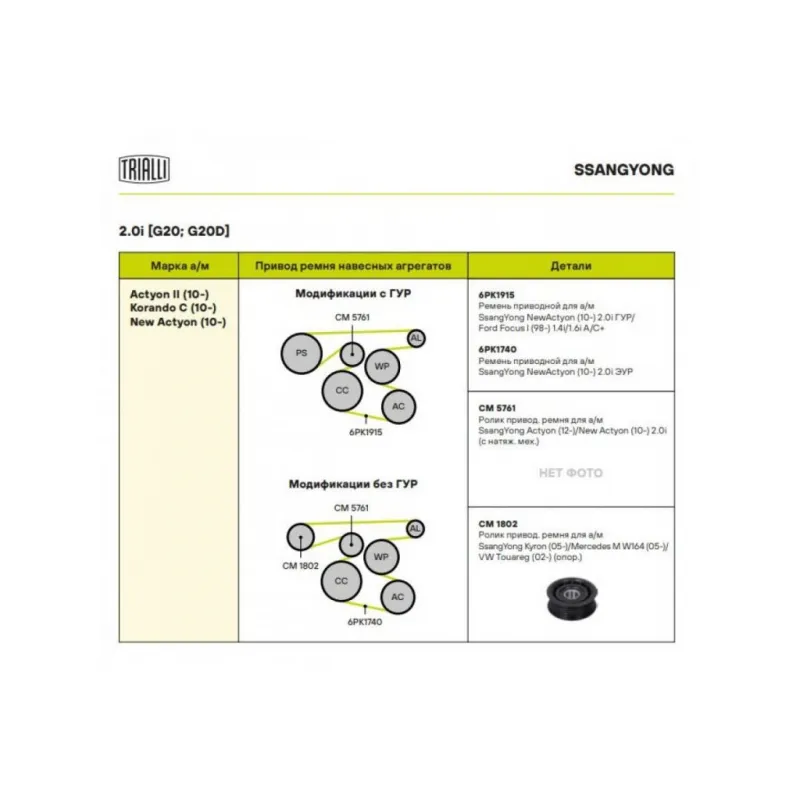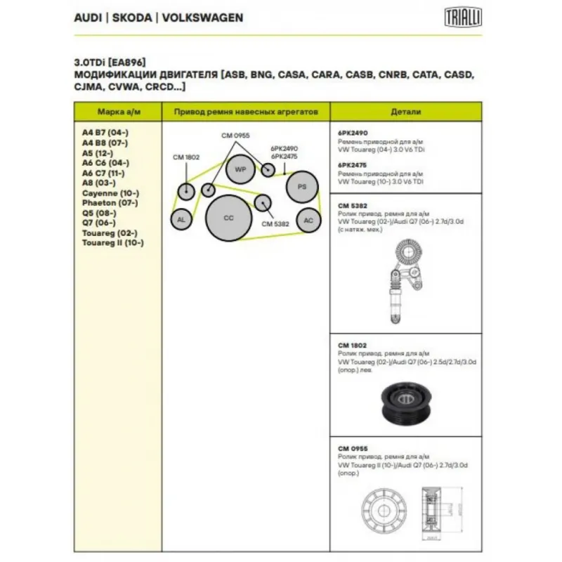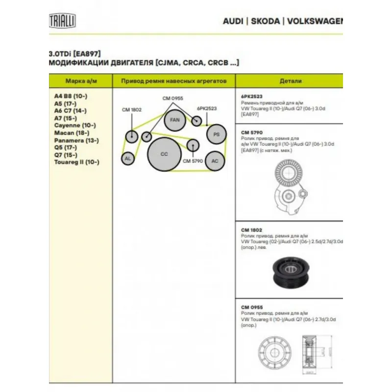| Сопутствующий товар: Ролики приводного ремня | CM 5923 |
