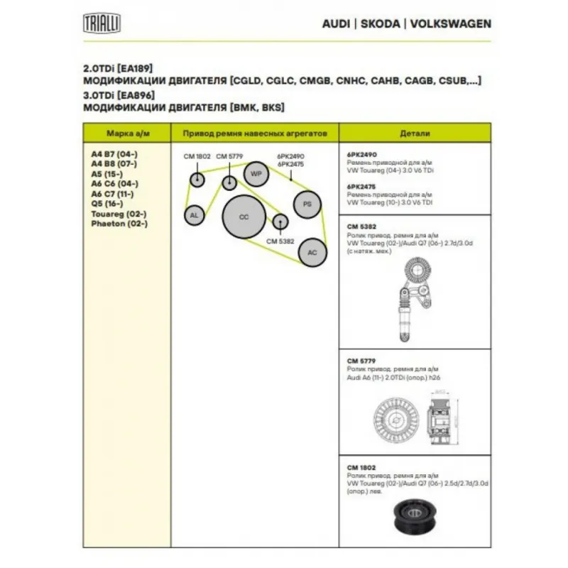 | Сопутствующий товар: Ролики приводного ремня | CM 1802, CM 0955, CM 5790 |