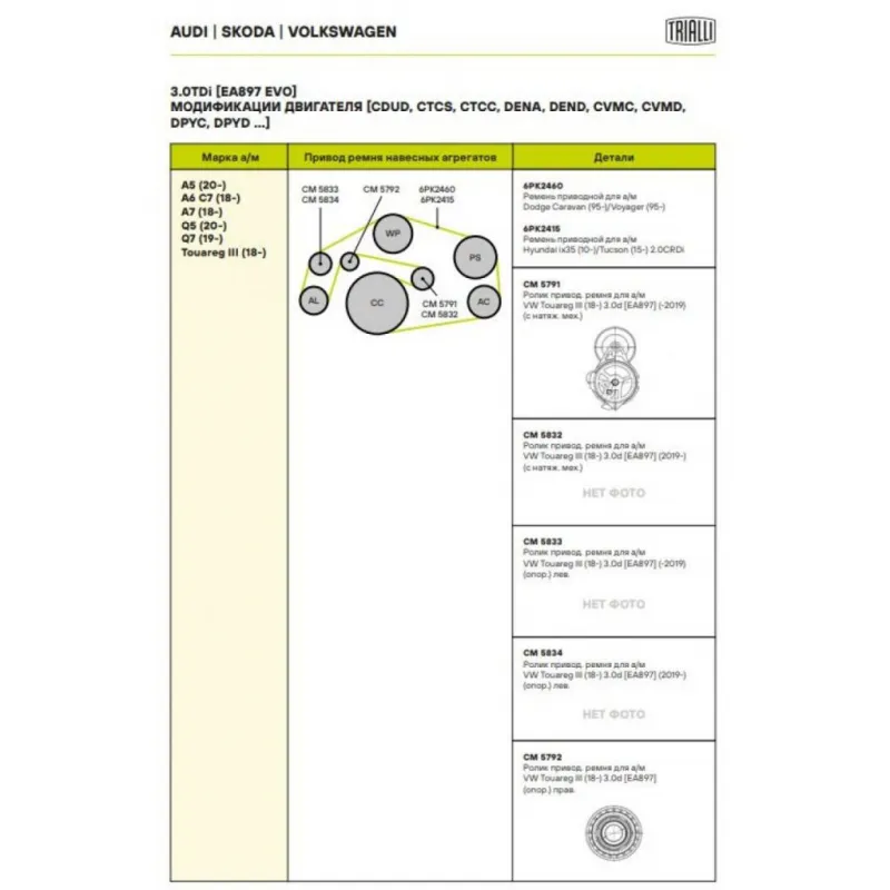 | Сопутствующий товар: Ремни | 6PK2460, 6PK2415 |