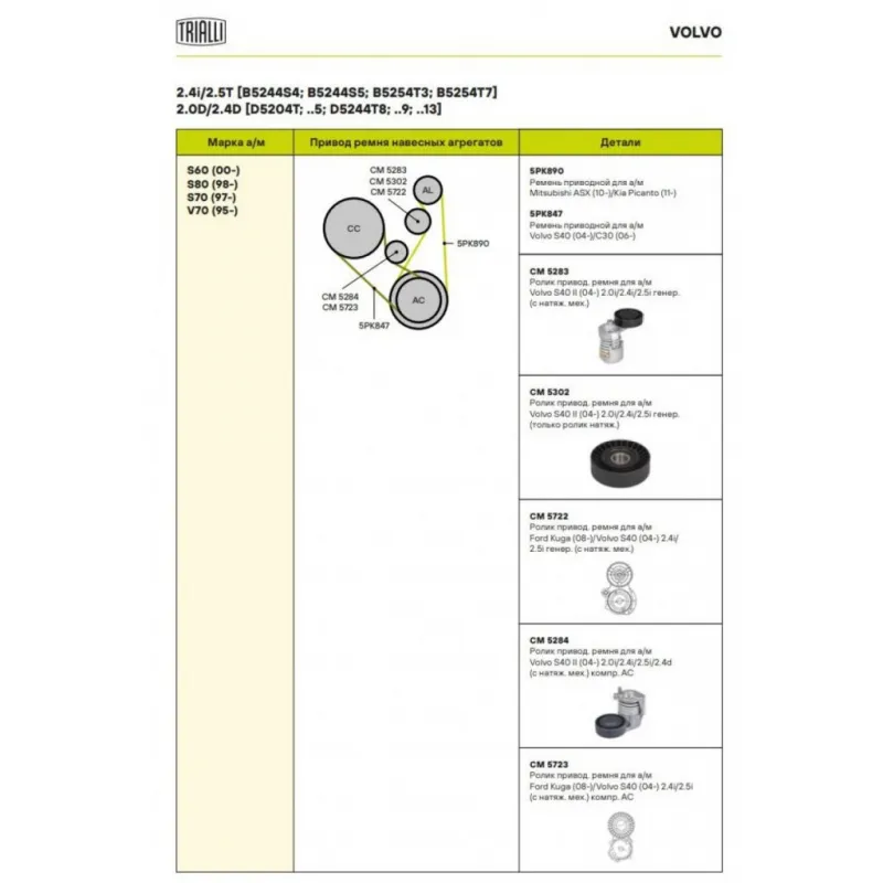 | Сопутствующий товар: Ремни | 5PK890, 5PK847 |