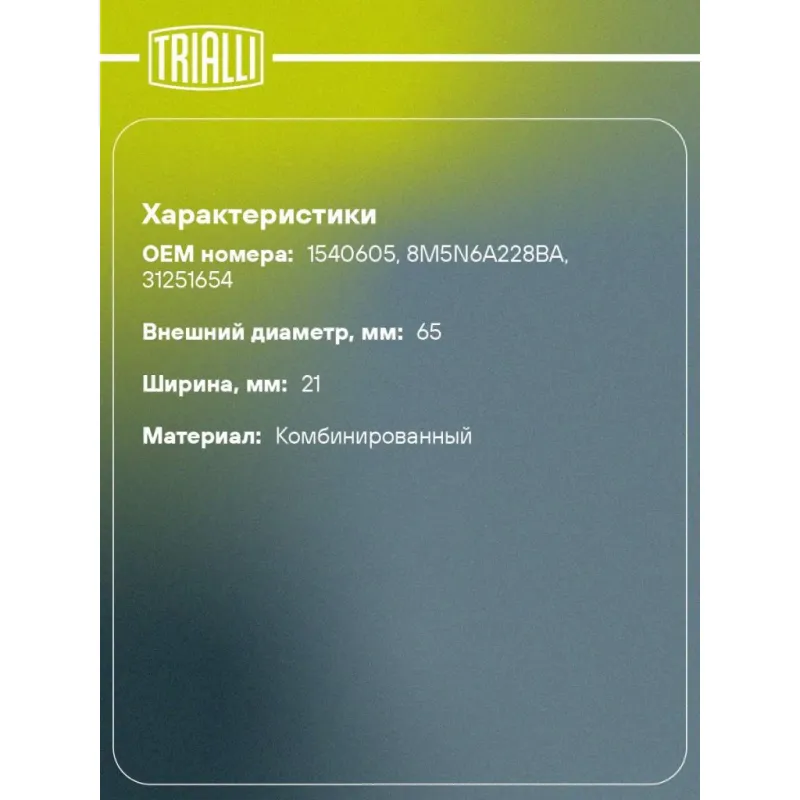 | Внешний диаметр, мм | 65 |
