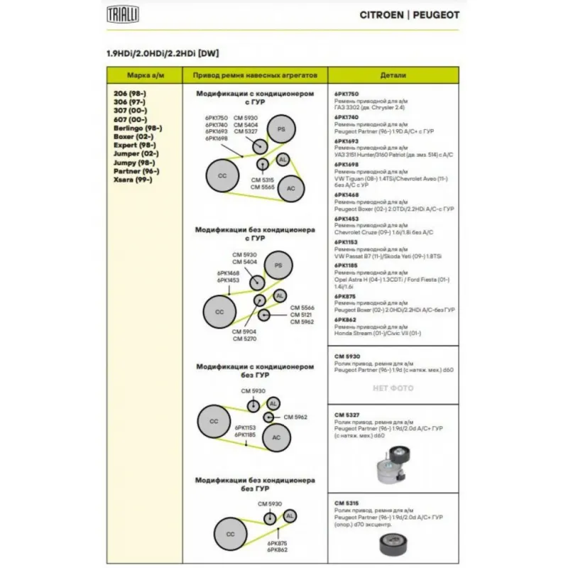 | Сопутствующий товар: Ремни | 6PK1750, 6PK1740, 6PK1693, 6PK1698, 6PK1468, 6PK1453, 6PK1153, 6PK1185, 6PK875, 6PK862 |