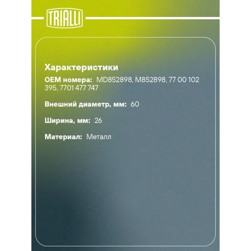 | TRIALLI CM5316 2 шт. | 2 дня | 166.40 р. | |