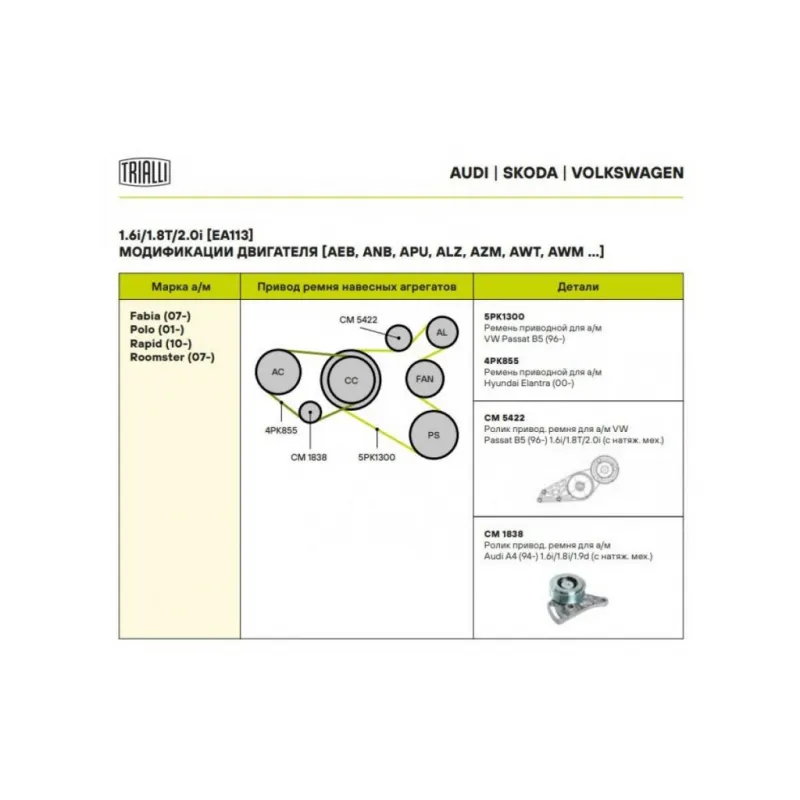 | Сопутствующий товар: Ролики приводного ремня | CM 1838 |
