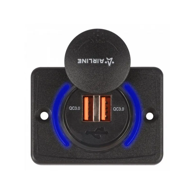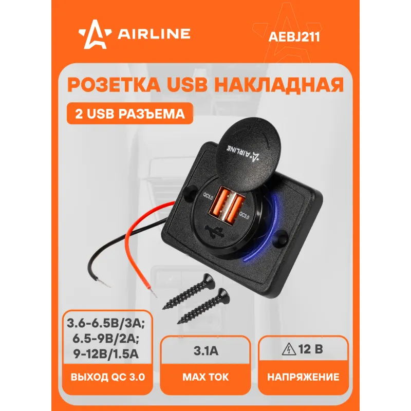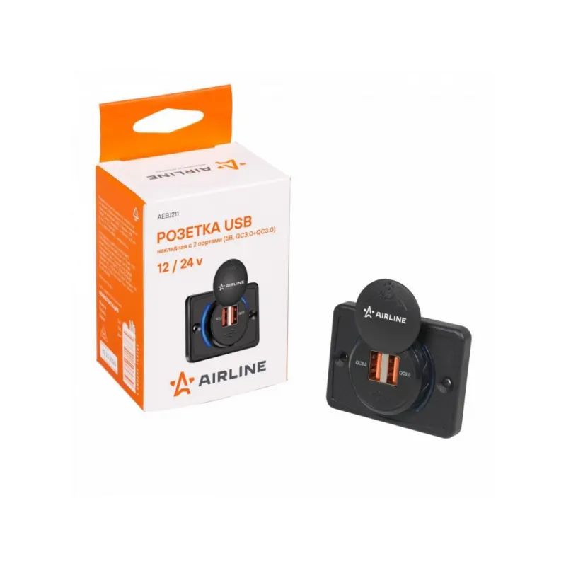 Розетка USB накладная c 2 портами (5В, QC3.0+QC3.0) Описание: Розетка с USB накладная 12/24 В, 2 порта USB AIRLINE AEBJ211 устанавливается в салоне автомобиля или другого транспортного средства. Подключается к бортовой сети автомобиля 12/24 Вольт. Позволяет заряжать мобильные устройства от двух портов USB QC3.0. Розетка закрывается брызгозащитной пластиковой заглушкой. Для более удобной установки в комплекте вам предоставляется 2 самореза. Также розетку можно использовать в автобусе, троллейбусе, автодоме, микроавтобусе, мотоцикле и т.д. Особенности устройства: 2 выхода USB - Выход QC 3.0: 3.6-6.5В/3А, 6.5-9В/2А, 9-12В/1.5А; Простота установки и эксплуатации. Защита от перегрузки. Защита от перегрева. Защита от короткого замыкания. Розетка имеет пластиковую крышку, которая защищает разъем прикуривателя от попадания в нее воды. Подойдет для подключения любых устройств USB: автомобильную зарядку, навигаторы, мобильные телефоны, смартфоны, планшеты, навигация, GPS и др. Товар официального производителя AIRLINE. Розетка USB - это полезный подарок автомобилисту, мужчине и женщине, автолюбителю, папе, отцу, мужу, парню и другу, позволит заряжать ваши устройства в пути и всегда оставаться на связи. Характеристики: Артикул: AEBJ211 Параметры USB: Выход QC 3.0: 3.6-6.5В/3А, 6.5-9В/2А, 9-12В/1.5А Напряжение питания, В: 12/24 Ширина, мм: 63,8 Высота, мм: 47,8 Глубина корпуса, мм: 5,5-18 Комплектация: Розетка USB - 1 шт Саморез - 2 шт Гарантия: от 1 года.